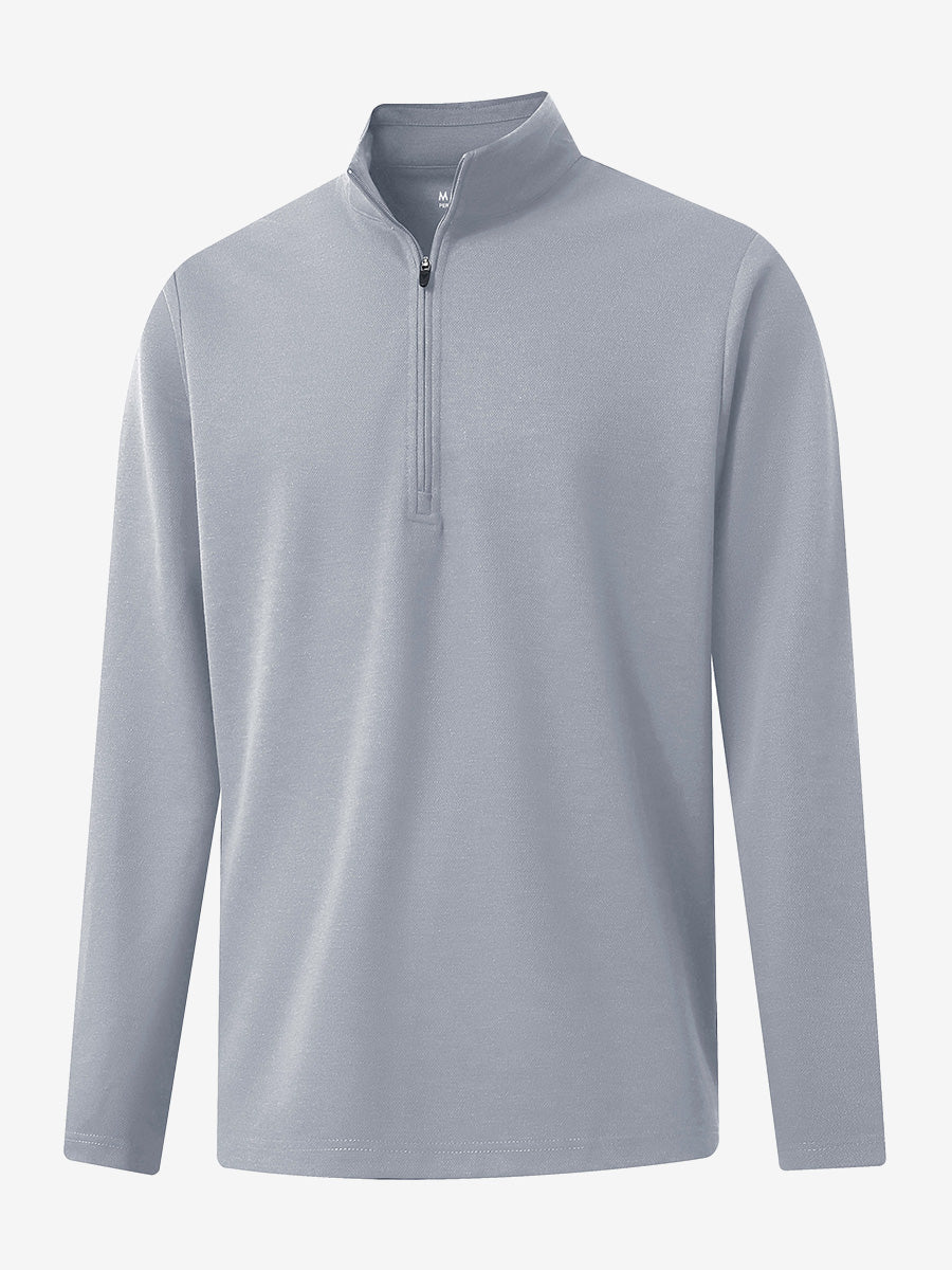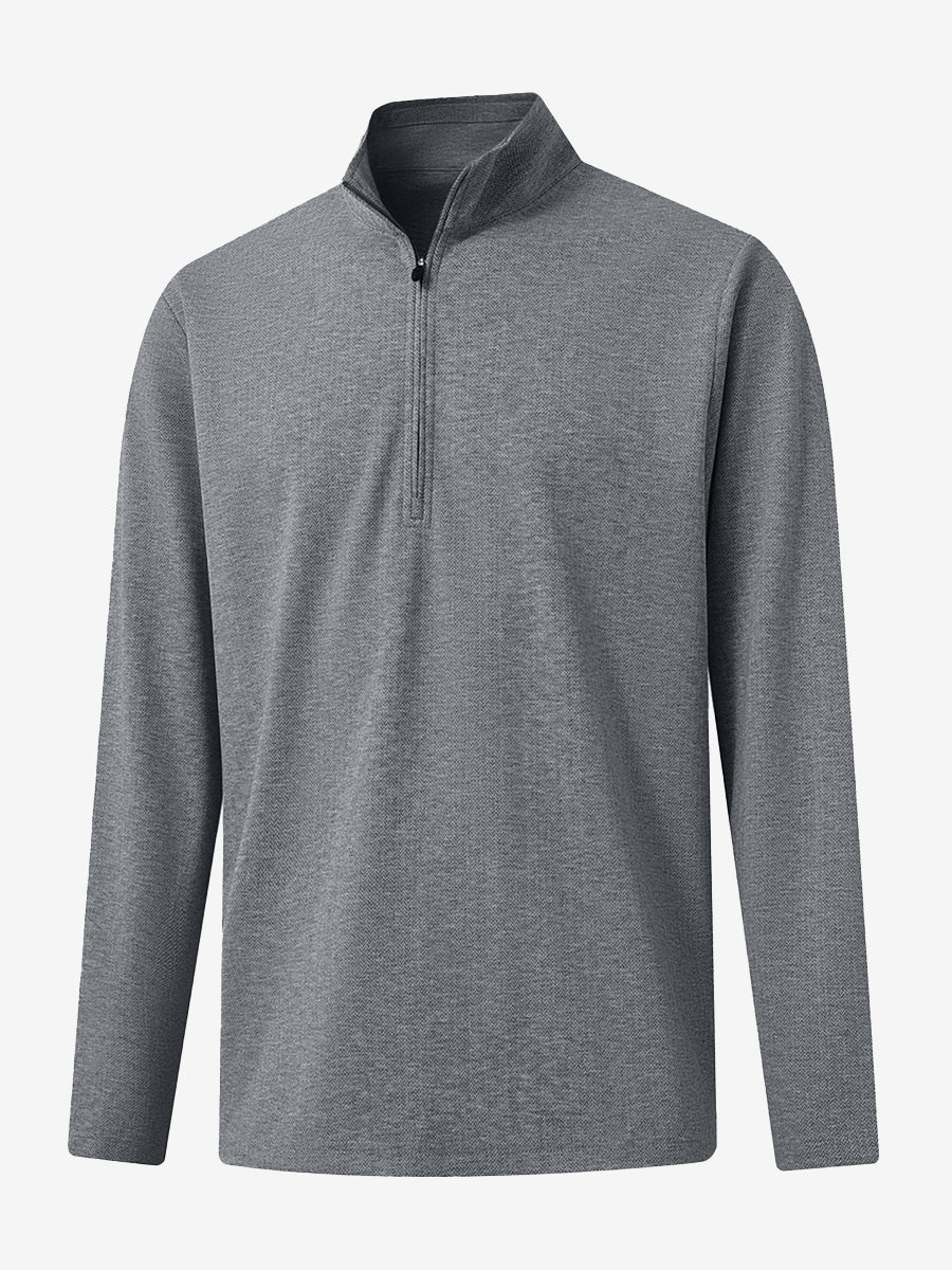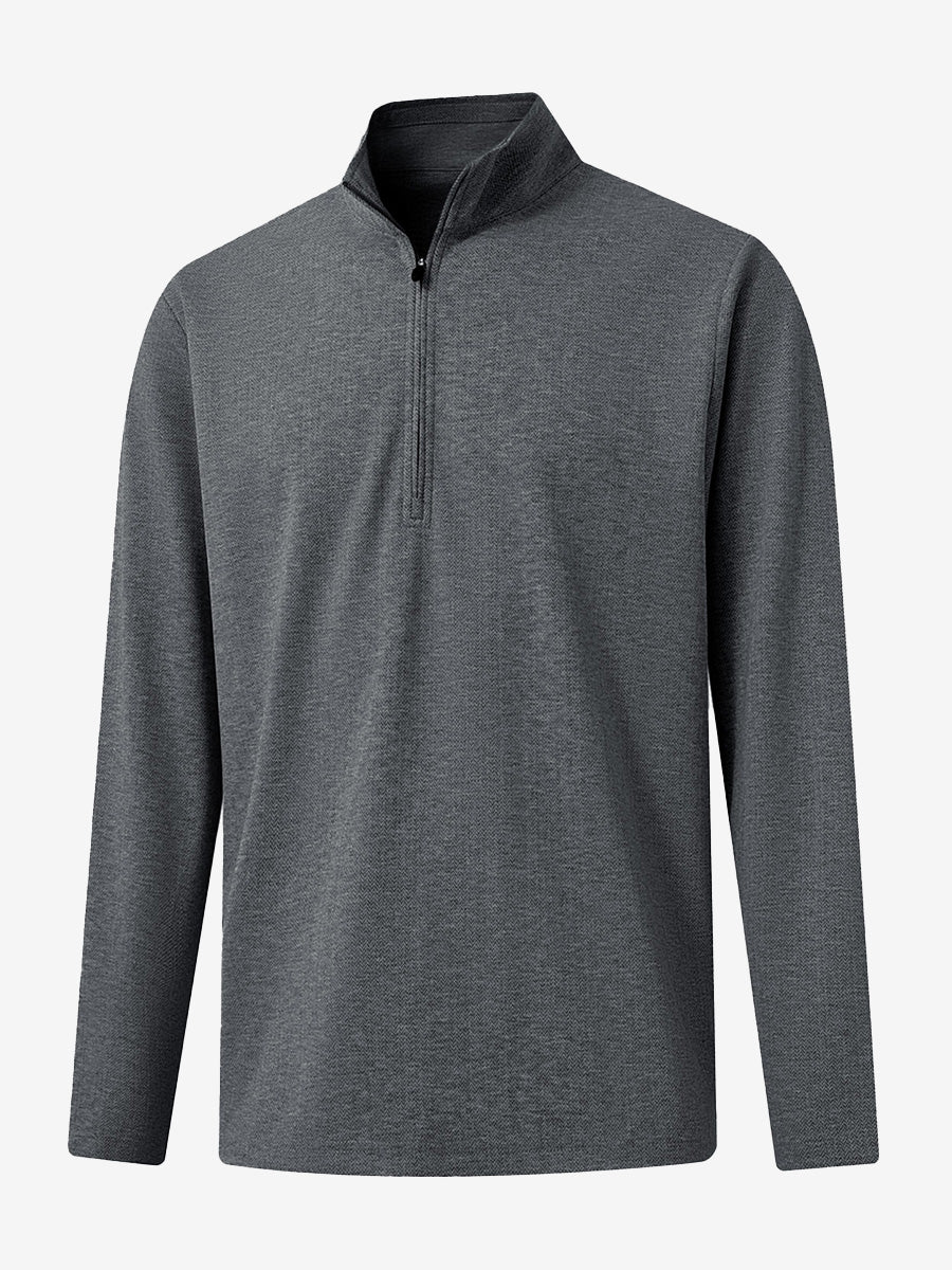 Experience ultimate comfort and style with our Premium Jacquard Quarter Zip Pullover. Crafted from performance herringbone fabric, it offers dry fit technology and UPF 50+ protection. This men's sweatshirt is ideal for staying warm in cold weather and perfect for layering in autumn and winter. The elaborately developed fabric ensures wear-resistance and durability, while maintaining a slight stretch for ease of movement. With meticulous stitching and exquisite details, this pullover is a perfect blend of quality and functionality.