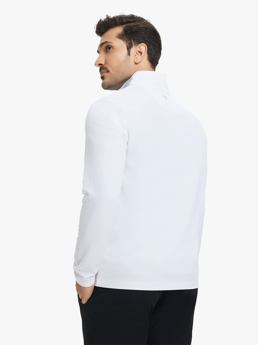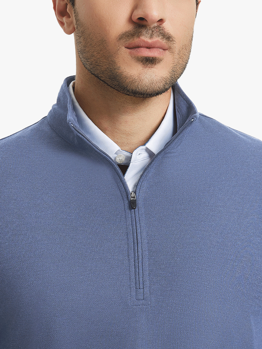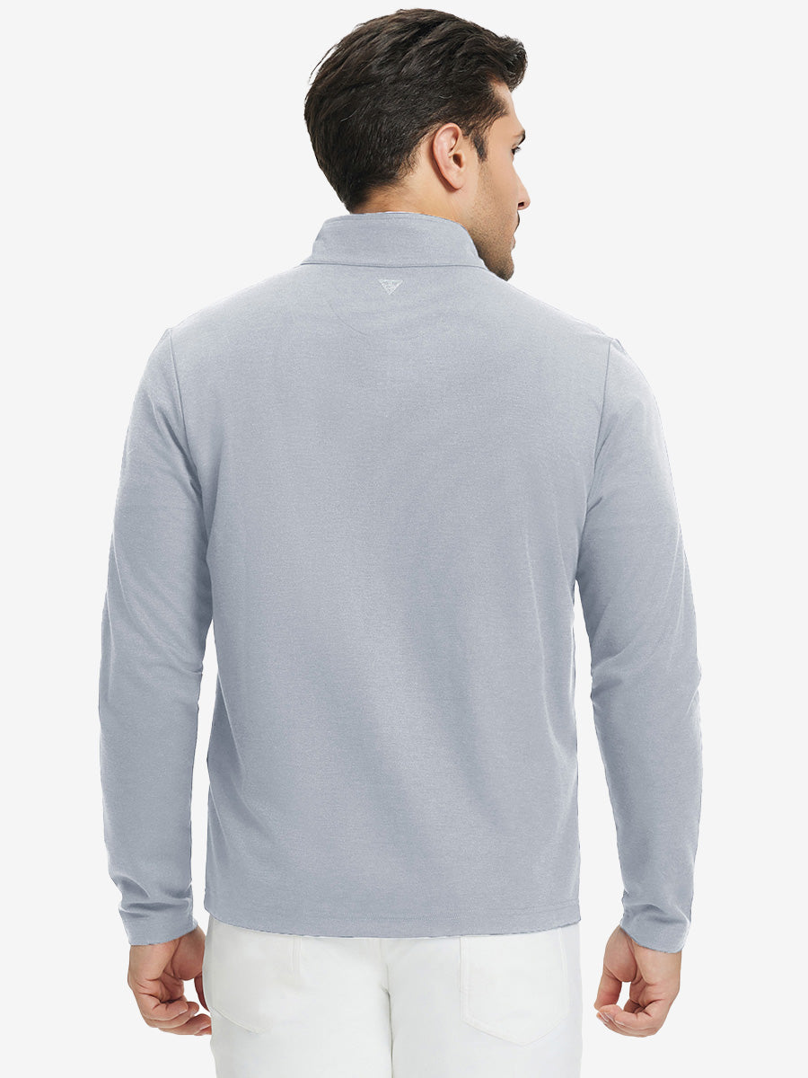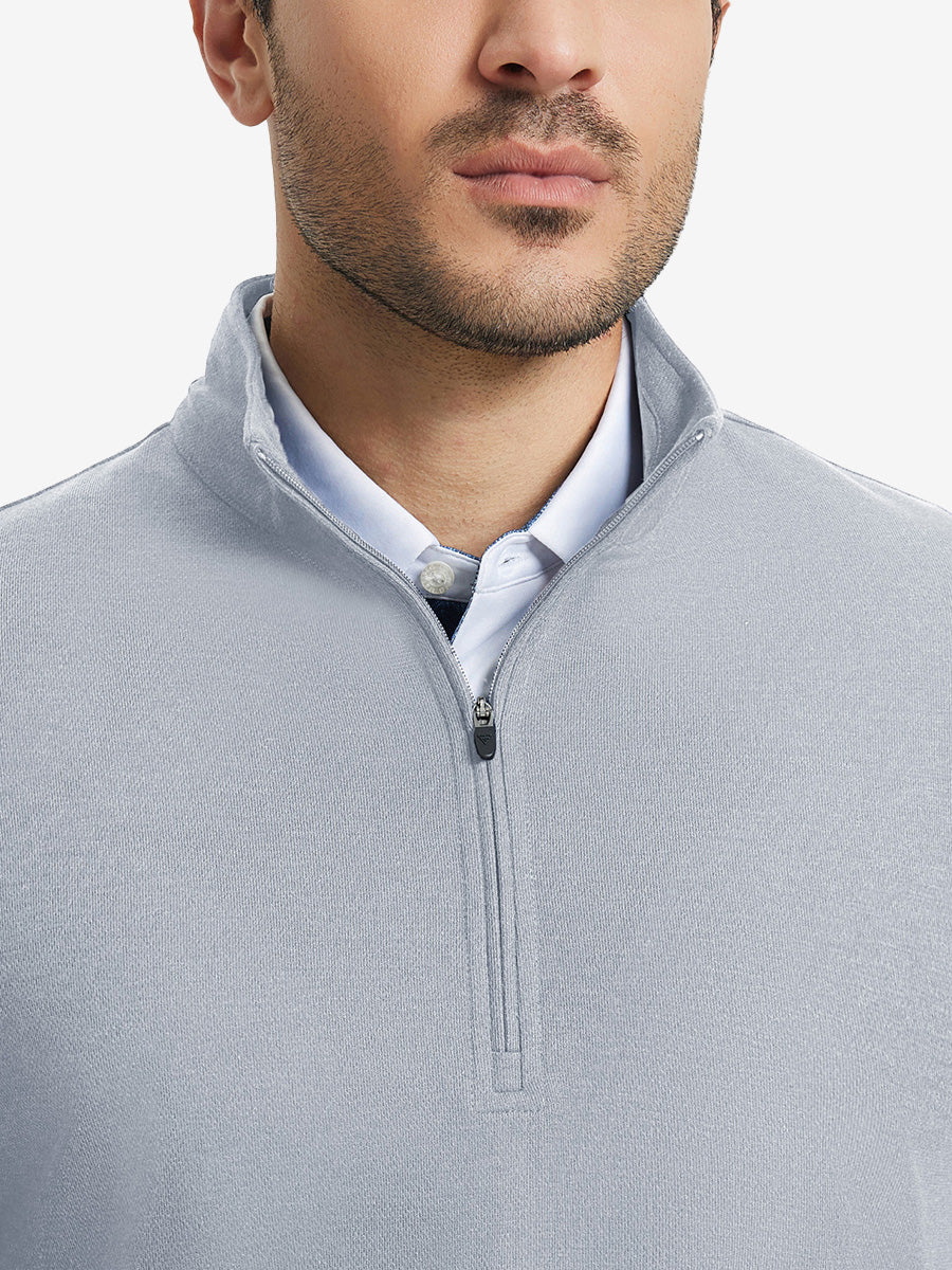 Experience ultimate comfort and style with our Premium Jacquard Quarter Zip Pullover. Crafted from performance herringbone fabric, it offers dry fit technology and UPF 50+ protection. This men's sweatshirt is ideal for staying warm in cold weather and perfect for layering in autumn and winter. The elaborately developed fabric ensures wear-resistance and durability, while maintaining a slight stretch for ease of movement. With meticulous stitching and exquisite details, this pullover is a perfect blend of quality and functionality.