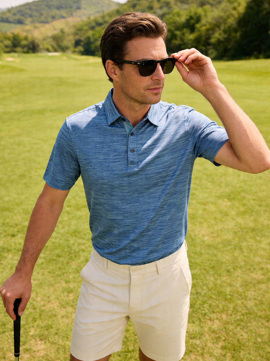 Step up your style with the "Cool Heather Texture Polo." Versatile and easy to match, this men's casual shirt is perfect for various occasions. Crafted from pique fabric with a solid collar and placket, it exudes visual elegance and style. Featuring dry-fit technology, UPF50+ protection, softness, and 4-way stretch, this golf shirt keeps you comfortable, cool, and breathable while ensuring excellent mobility in all directions.