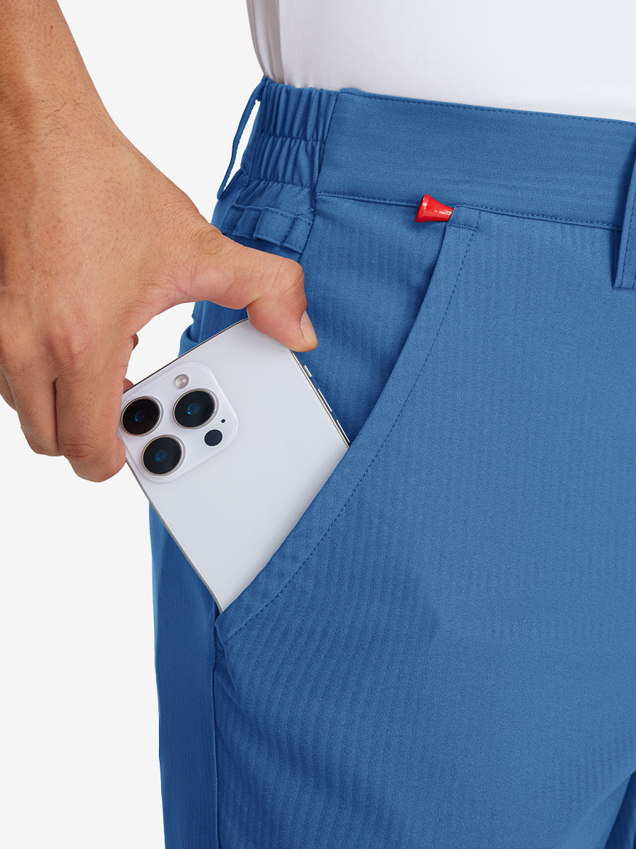 Step out in style with our Lightweight Flat Front Casual Trousers. Made from a lightweight, quick-dry, breathable fabric, these pants offer comfort and flexibility with 4-way stretch for outdoor activities and daily wear. With UPF 50+ sun protection, these classic-fit men's golf pants safeguard your skin. Stay dry with their water-repellent feature, offering temporary protection against light rain.