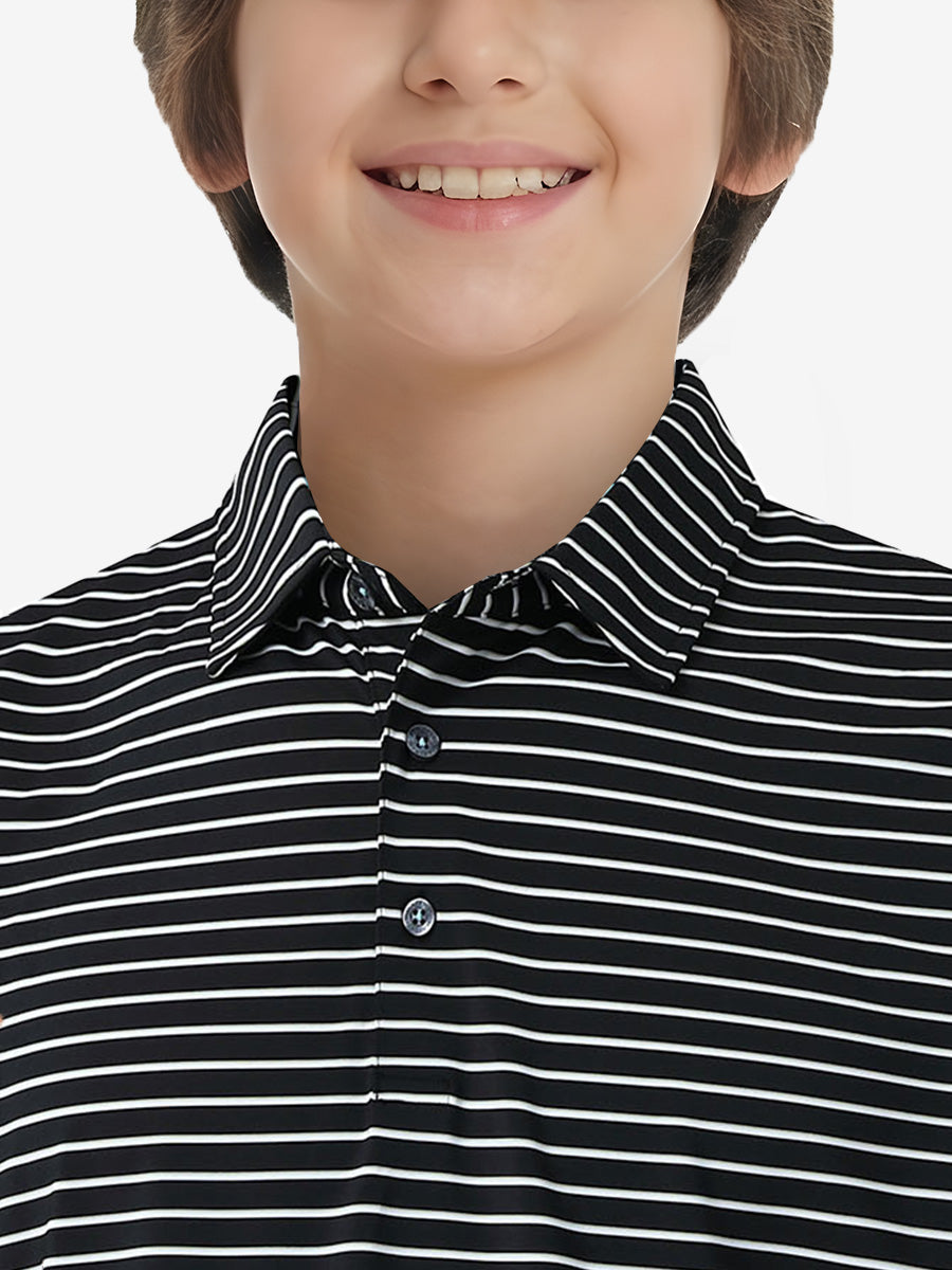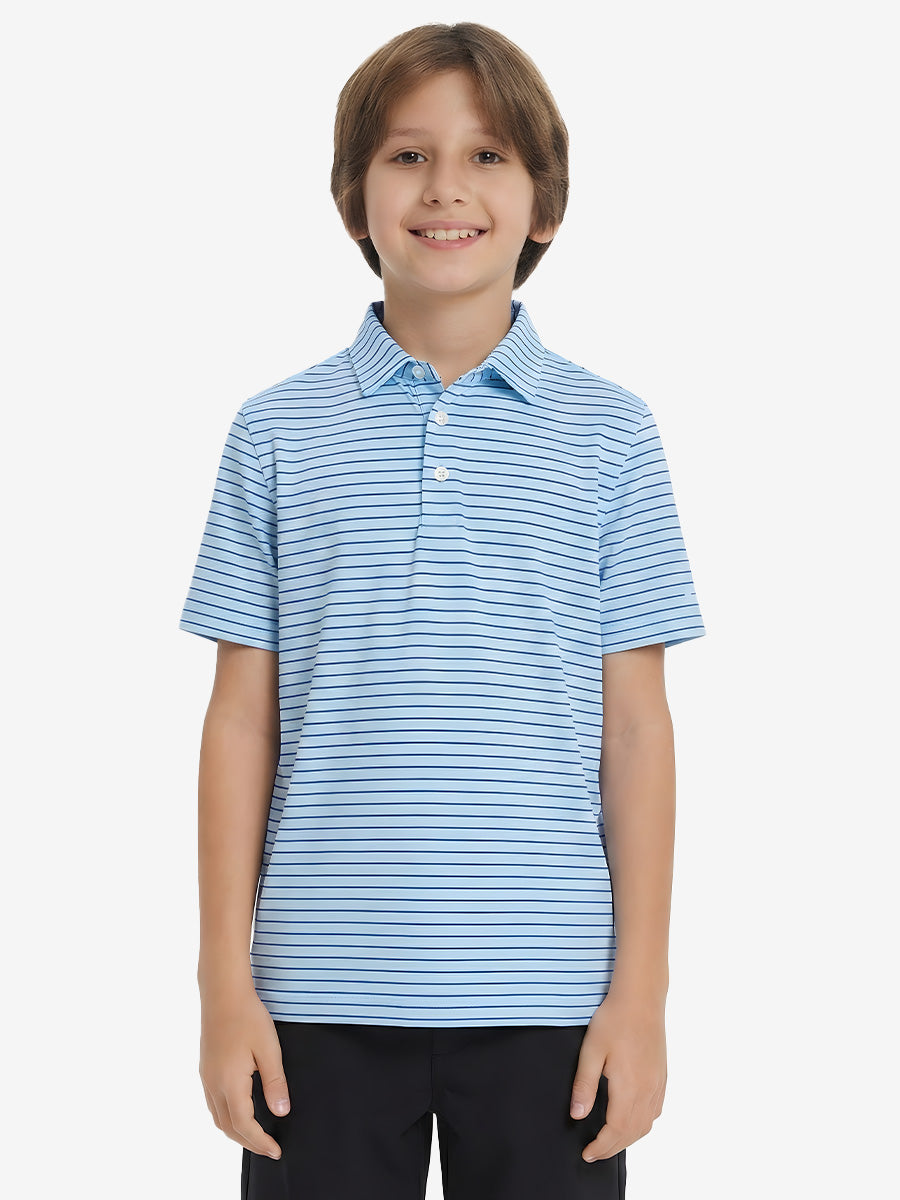 Discover the versatility of our Youth Performance Golf Polos. Style meets functionality in these boys' golf shirts featuring a no-roll collar, tag-free design, and durable stitching. Easy to care for, they maintain softness and shape wash after wash. Stay comfortable all day with quick-dry, moisture-wicking, stretch, and breathable fabric.