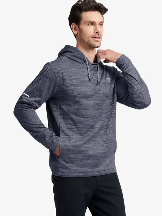 This hoodie quickly became one of my husband's favorites. The material is unbelievably soft and cozy - it feels warm without being bulky, making it perfect for layering or wearing on its own. The grid texture gives it a nice look and adds a bit of style compared to a standard sweatshirt. He loves how lightweight it is while still keeping him comfortable on chilly mornings. The fit is spot-on, not too loose or tight, and the kangaroo pocket is a nice touch for keeping hands warm or holding small items. The quality and feel of the fabric make it seem much more expensive than it is - definitely a great find for both comfort and style! I have multiple items from this brand and I haven't had one that I dislike!